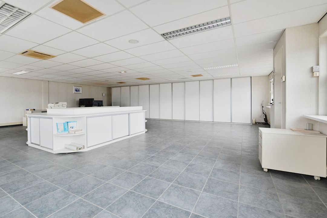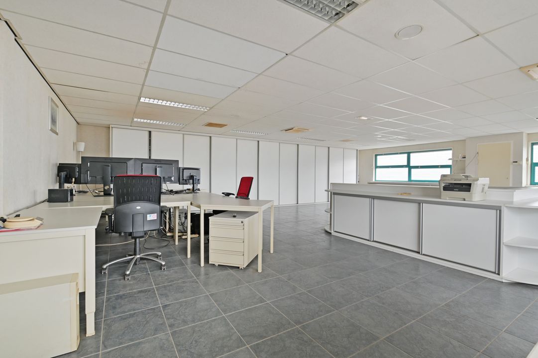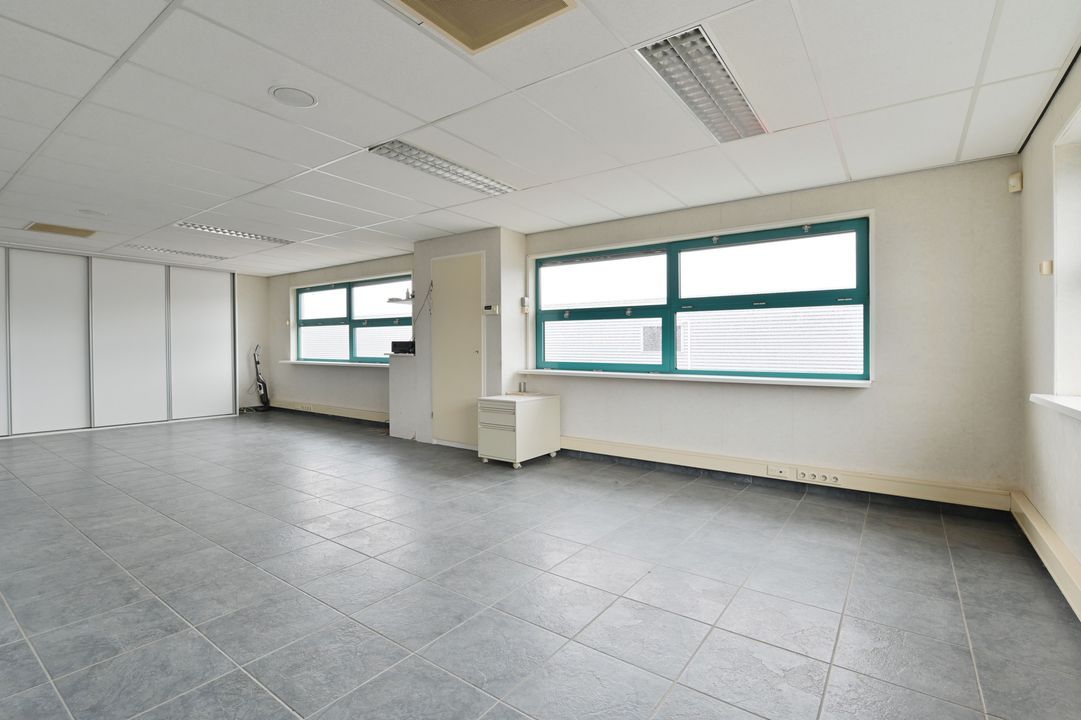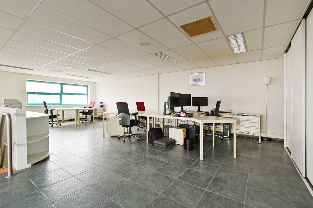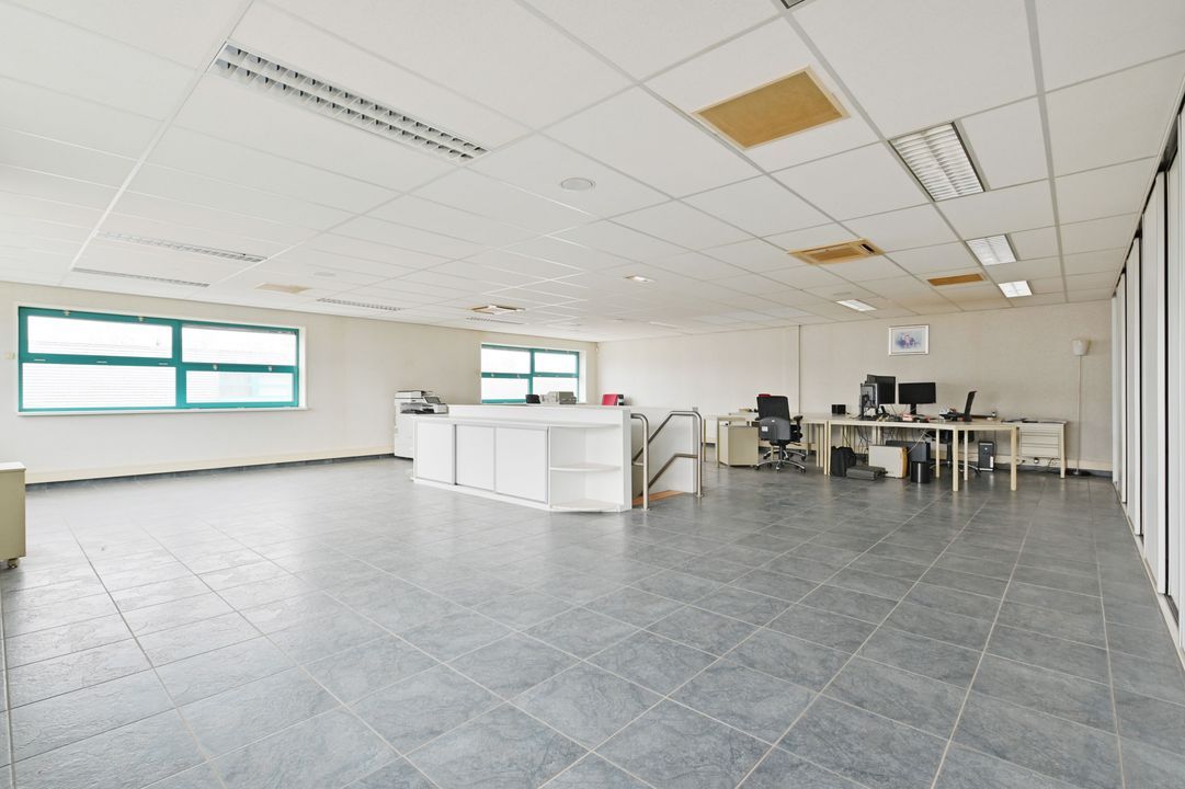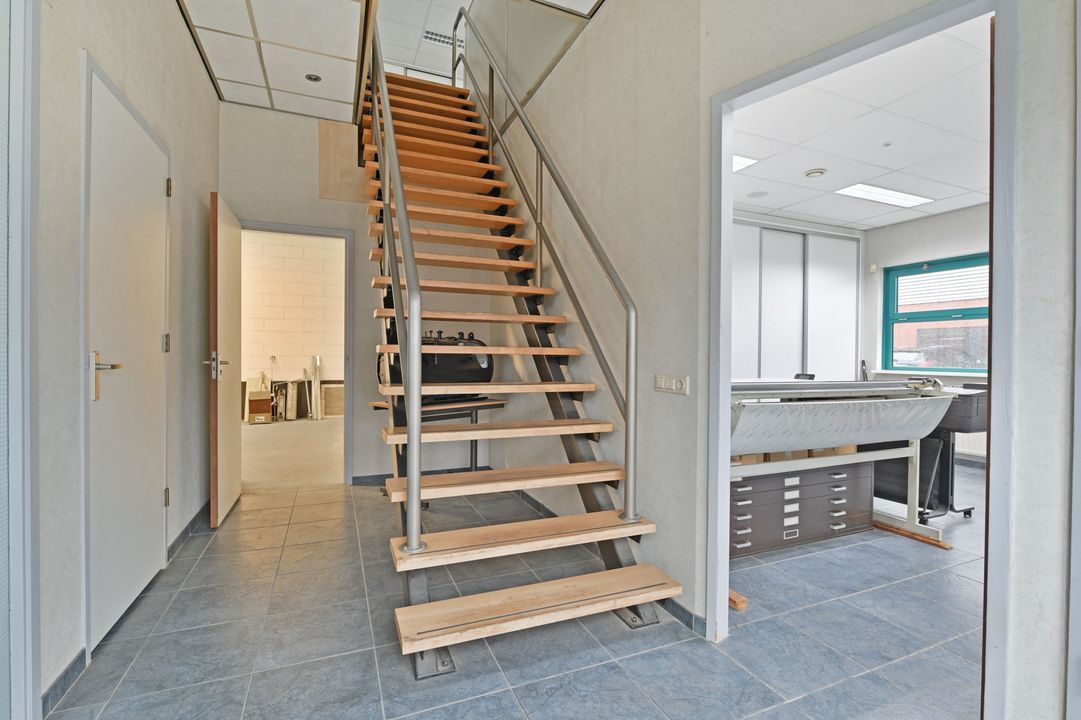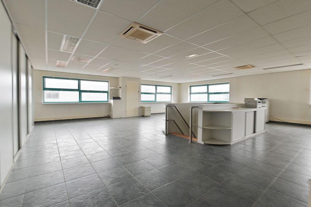Via een vaste trap bereikt u de eerste verdieping. Deze verdieping is dankzij raampartijen aan beide zijden zeer licht en biedt diverse gebruiksmogelijkheden, bijvoorbeeld als kantoor- of opslagruimte. De verdieping is voorzien van een systeemplafond met verlichting, vaste kastruimte en verwarming en airco.