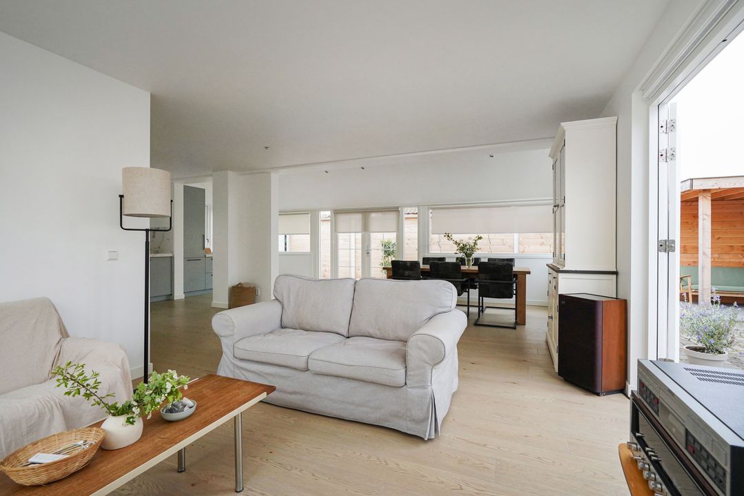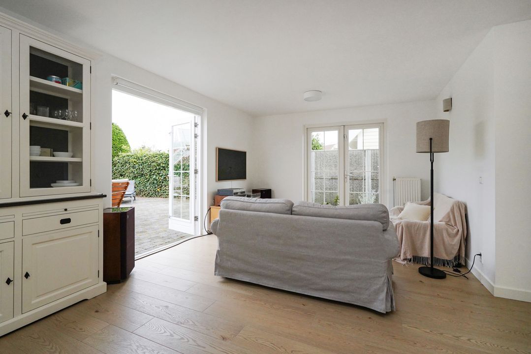 Deze royale villa beschikt over een eigen oprit met ruimte voor twee auto’s en is recent op tal van punten vernieuwd. In 2024 is de woonkamer geheel uitgebouwd en voorzien van vloerverwarming in de uitbouw, hoge plinten, een strak gestuct plafond met inbouwspots en luxe keramische vloertegels. De drie openslaande deuren met glasroeden brengen een zee aan licht en verbinden binnen met buiten op een prachtige manier.