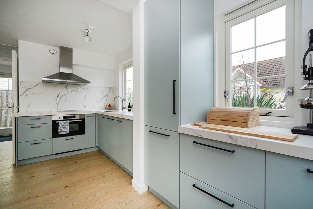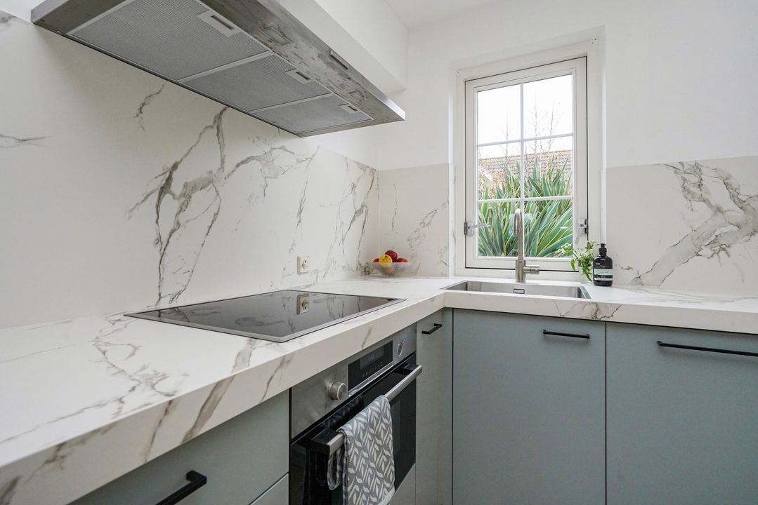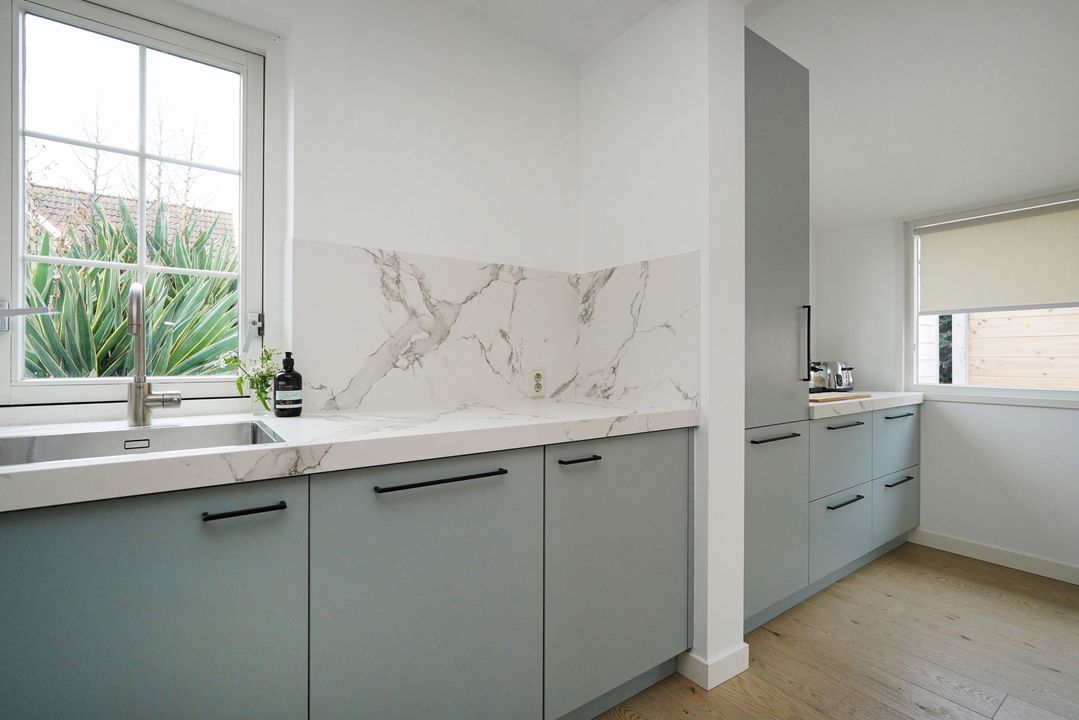 De moderne keuken (2020) is doorgetrokken in de aanbouw en is uitgerust met hoogwaardige inbouwapparatuur zoals een combi-oven, vaatwasser, inductiekookplaat, afzuigkap, en een composiet aanrechtblad met spoelbak en mengkraan. Ook de wandcontactdozen zijn vernieuwd voor extra comfort en veiligheid.