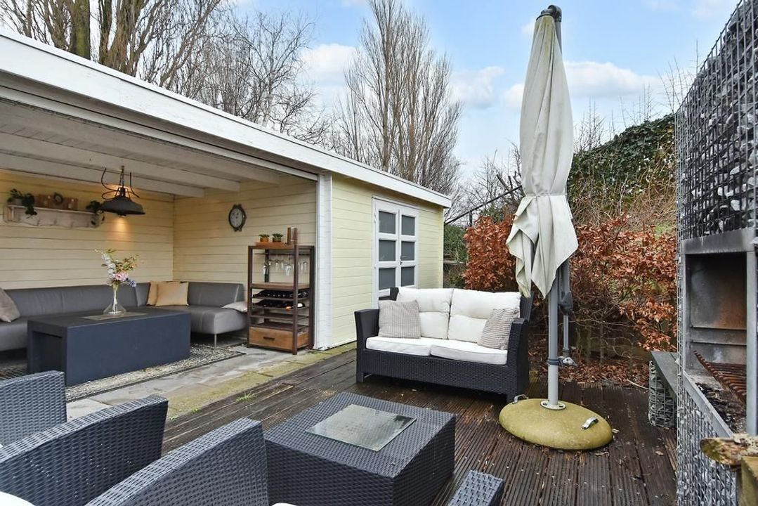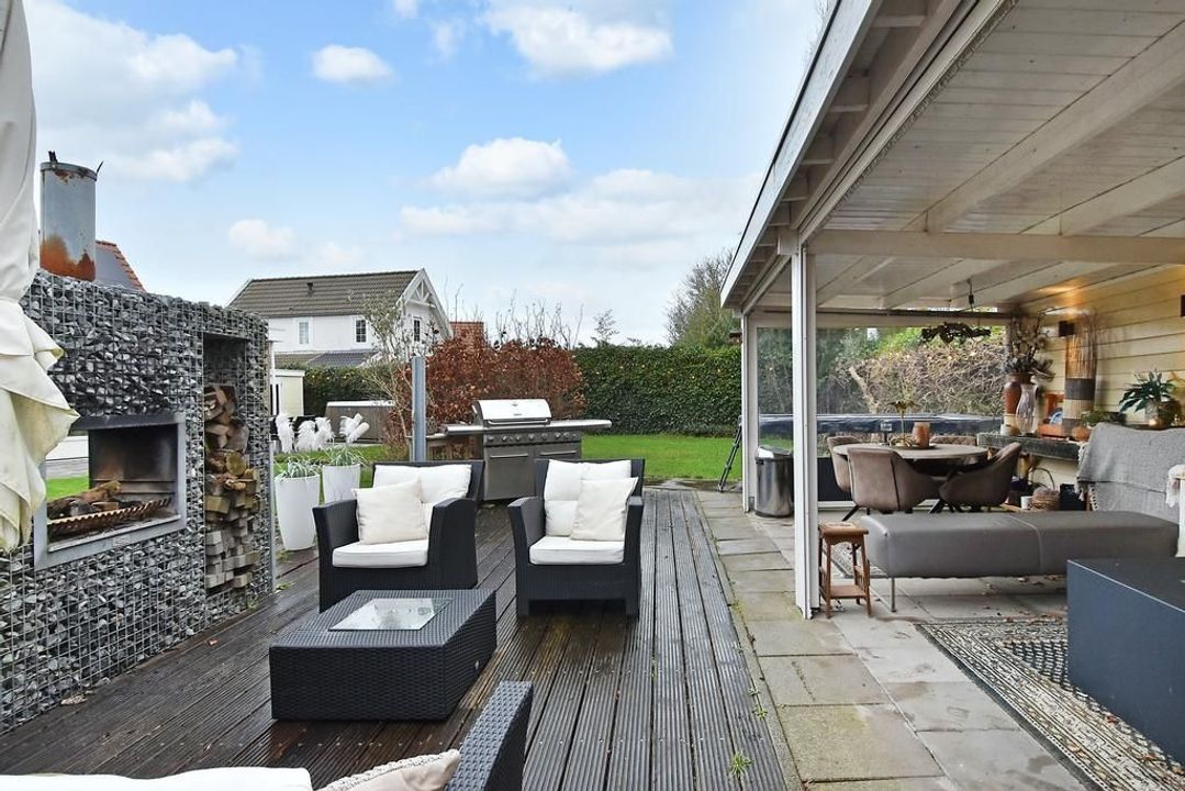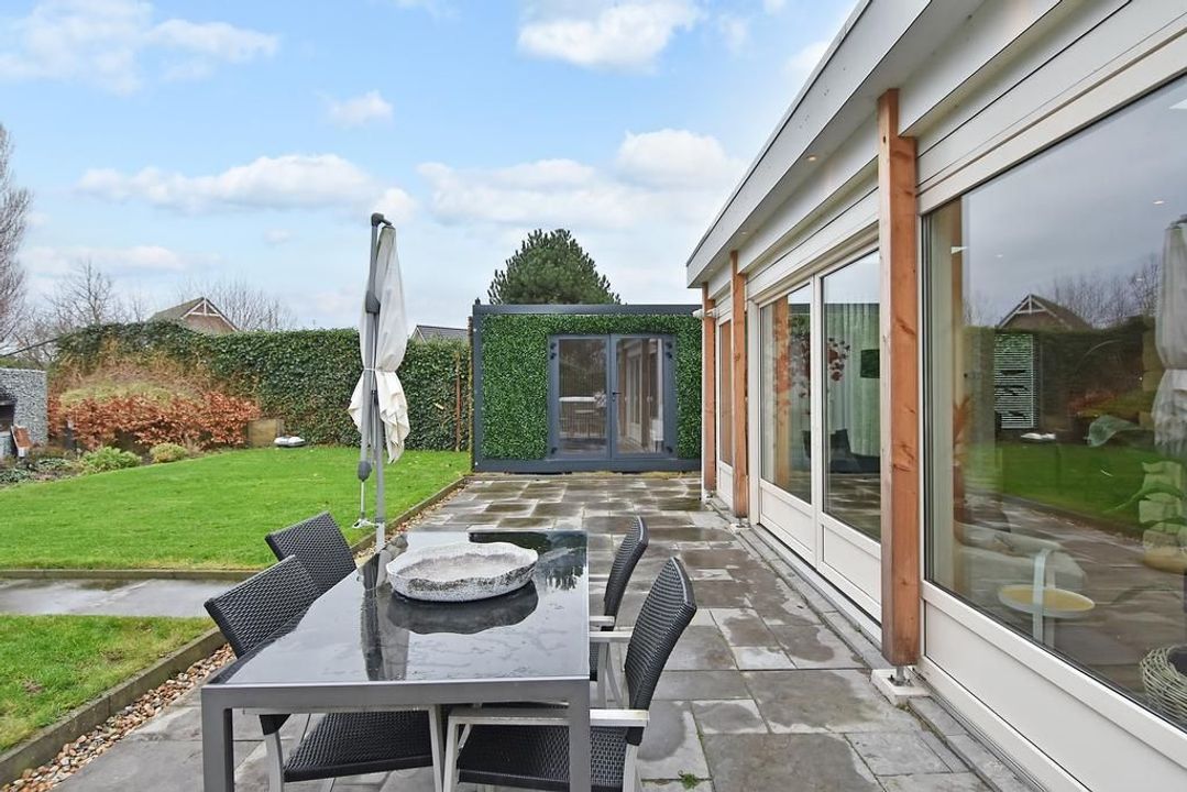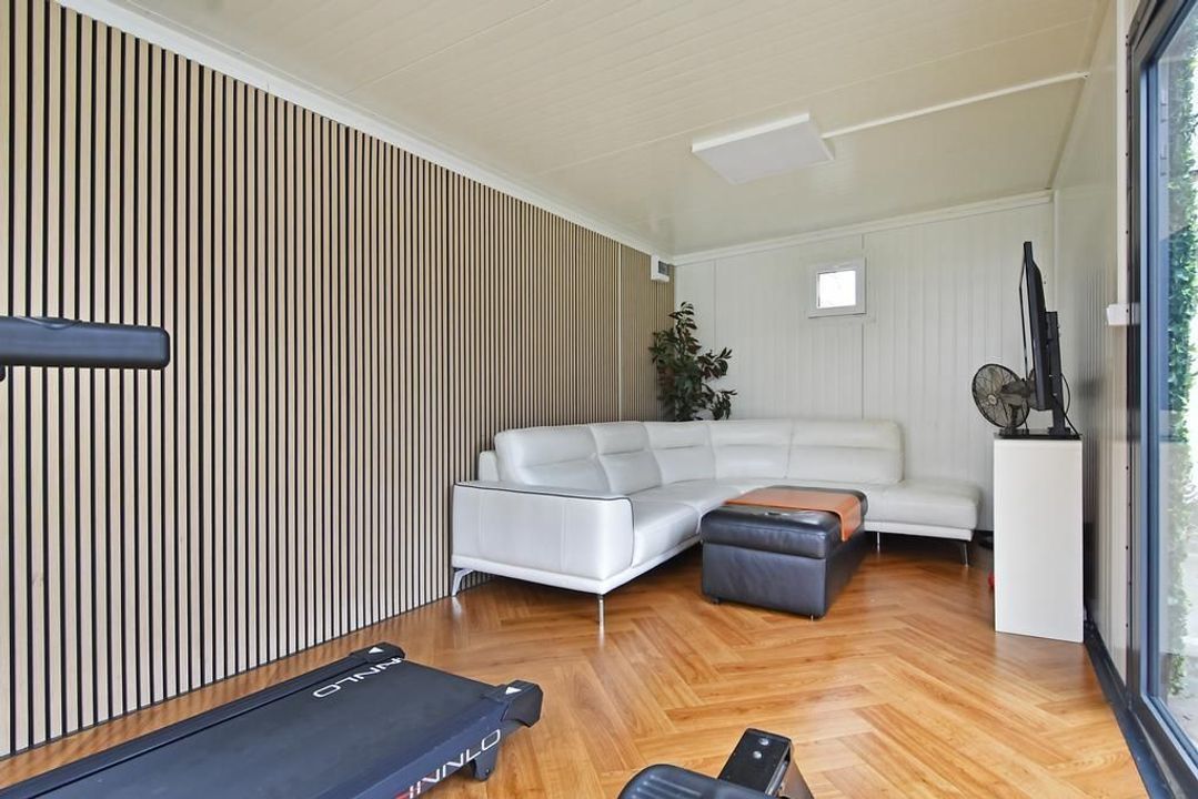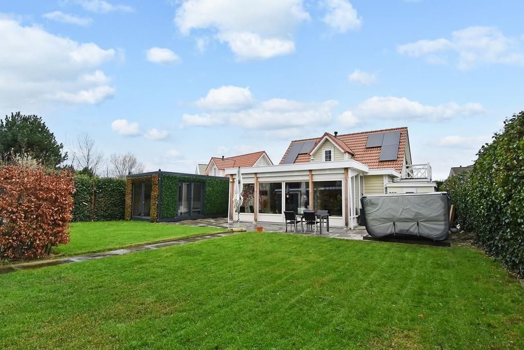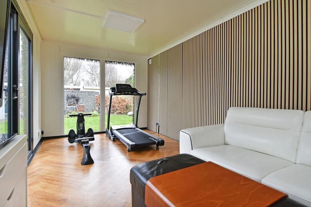 De prachtige tuin is een perfecte verlenging van het luxe interieur. Het recent aangelegde gras met sproei-installatie biedt een weelderig groen uitzicht, terwijl de luxe veranda (2022) een uitnodigende ruimte biedt om te ontspannen. De jacuzzi voor zes personen en de infrarood sauna blijven achter in de woning, zodat u kunt genieten van wellness op het hoogste niveau, altijd binnen handbereik. De tuin is omheind en biedt volop privacy. De naastgelegen unit is ingericht als fitnessruimte en maakt het geheel compleet.