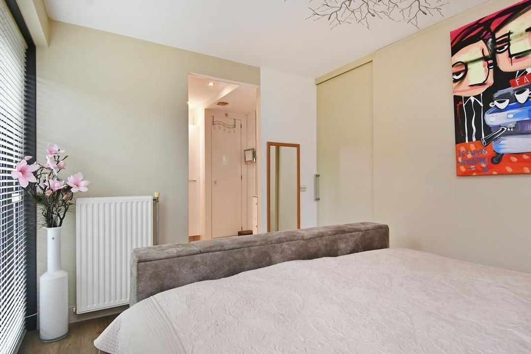 Op de eerste verdieping bevinden zich twee slaapkamers, waarvan er één is omgebouwd tot een luxe walk-in closet van topkwaliteit, en de andere is ideaal voor gasten of kinderen. De ouderslaapkamer is recent volledig vernieuwd, met veel kastruimte, airconditioning, en een elektrisch rolluik voor optimaal comfort. De moderne badkamer op deze verdieping is een oase van rust, voorzien van een inloopdouche, toilet, en luxe badkamermeubel met exclusieve wand- en vloertegels.