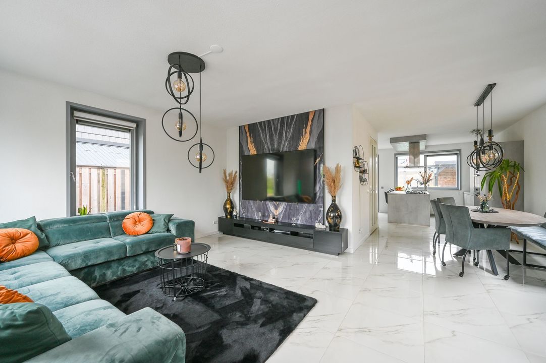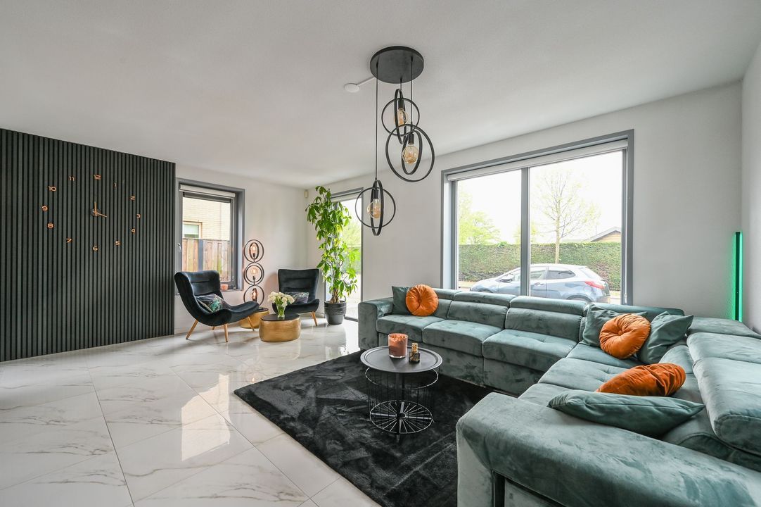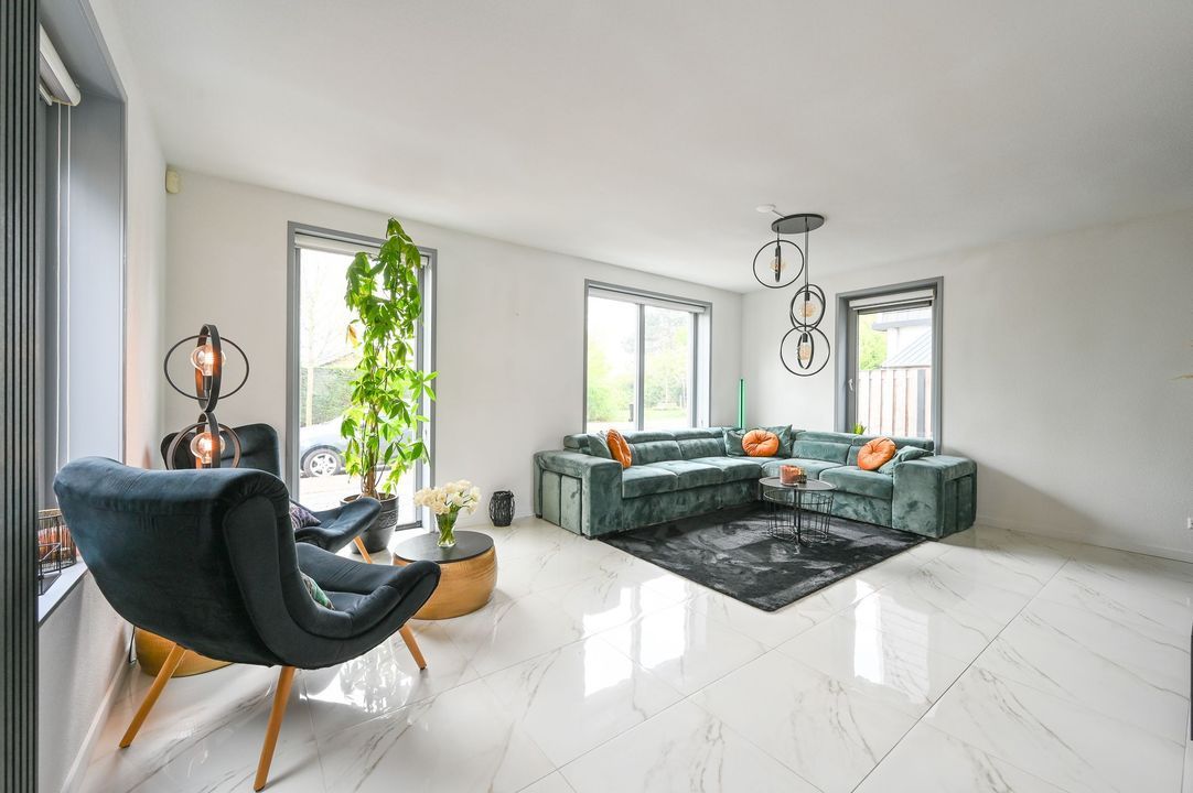 De woonkamer is een echte eyecatcher: stijlvol met grote raampartijen die zorgen voor veel daglicht. Hier ervaart u het ultieme woongenot.
