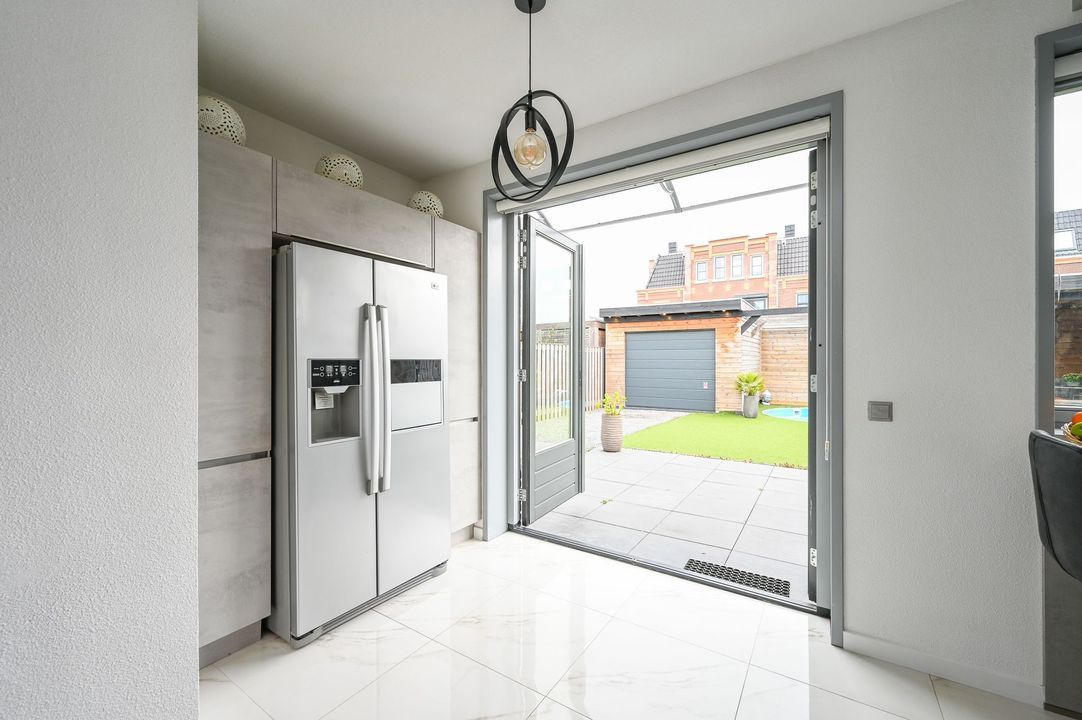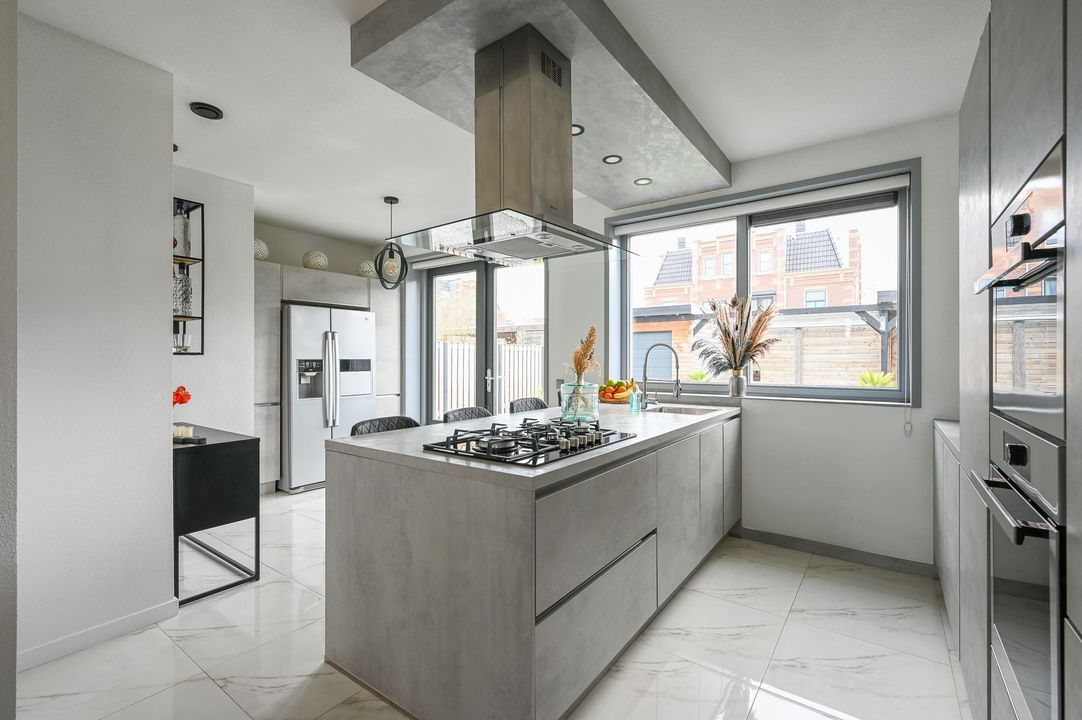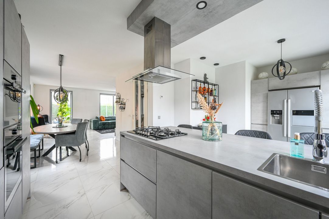 Open stijlvolle keuken voor kookliefhebbers met kookeiland en voorzien van luxe inbouwapparatuur (waaronder een 5-pits gaskookplaat, vaatwasser, magnetron, oven, een Amerikaanse koel-/vriescombinatie) maken van iedere maaltijd een feestje. Via de openslaande deuren bereikt u de tuin.