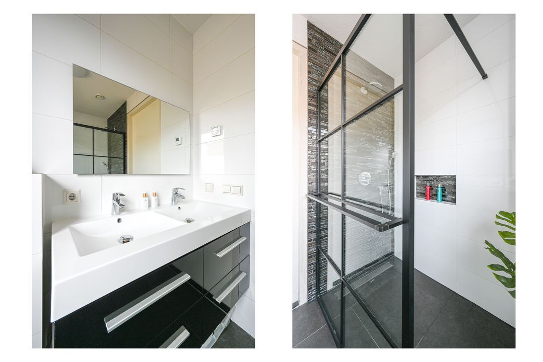 Luxe badkamer, inloopdouche, wastafelmeubel met dubbele wasbak, tweede toilet en vloerverwarming