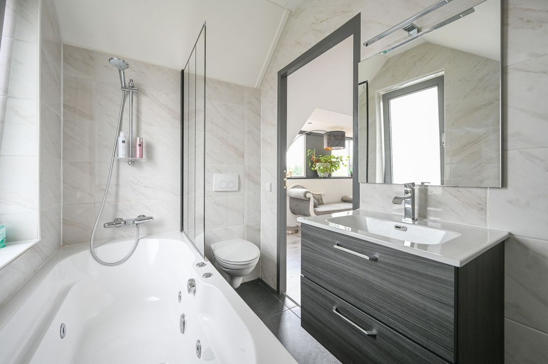 Tweede luxe badkamer met whirlpool bad, douche, wastafel en derde toilet, welness in eigen huis!