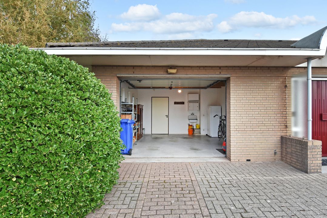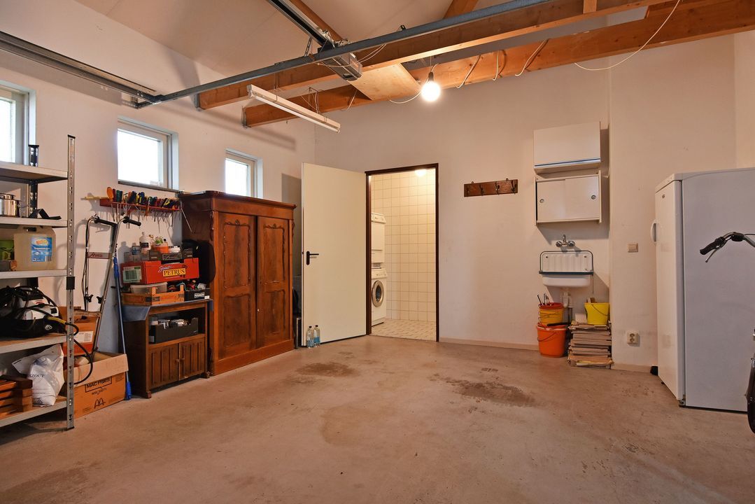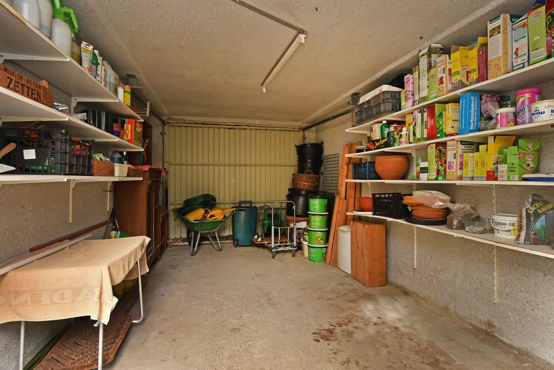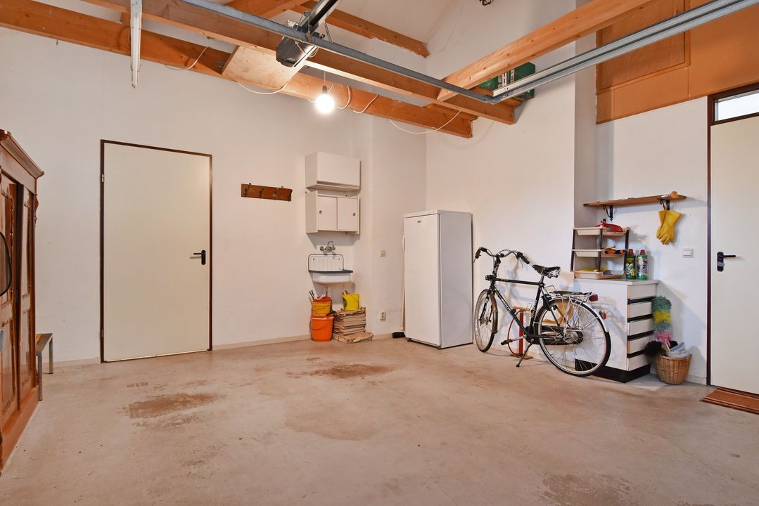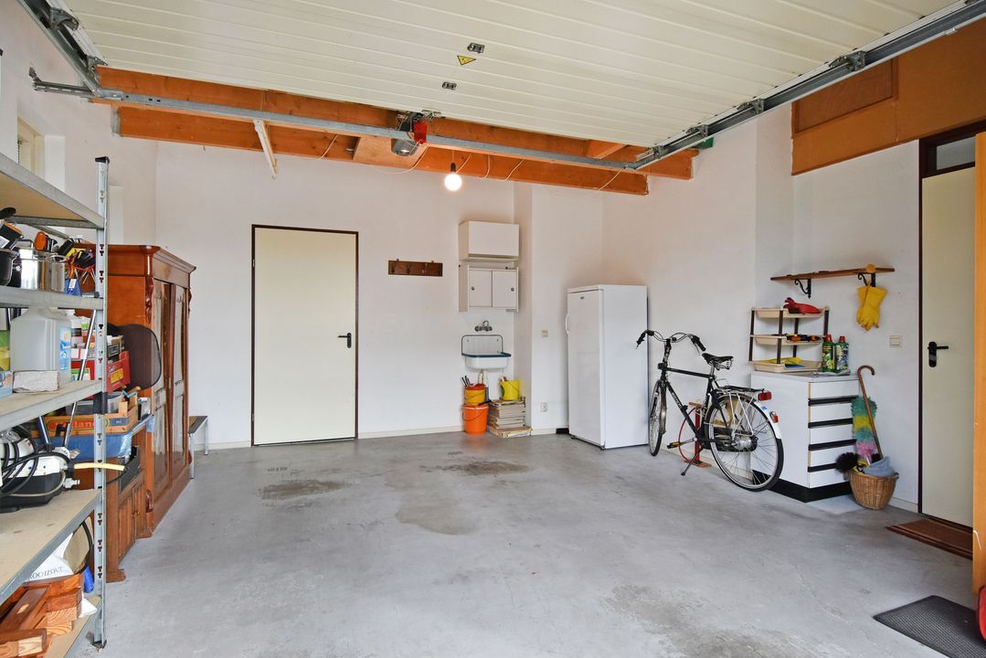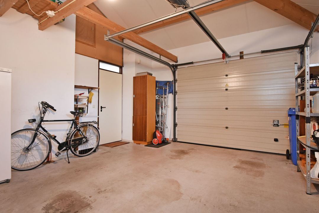 De garage is uitgerust met een elektrische overheaddeur (met afstandsbediening), een wasbak met uitstortgootsteen, en de omvormer voor de 5 zonnepanelen.