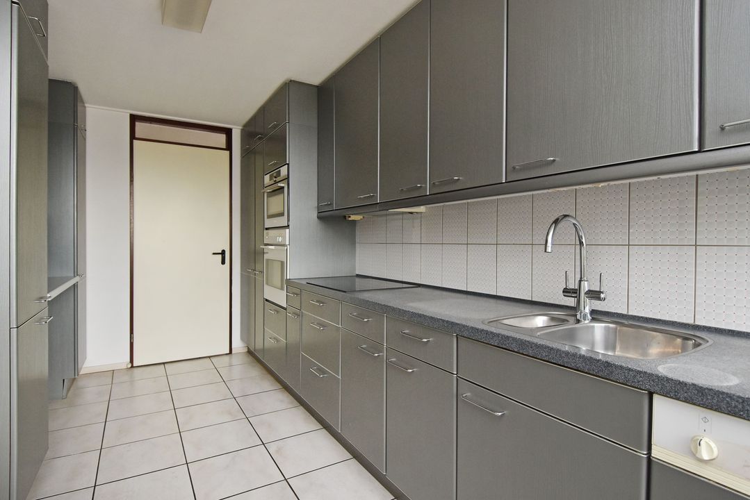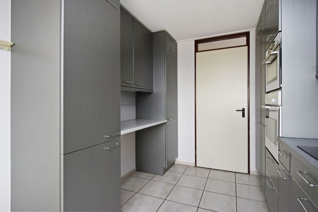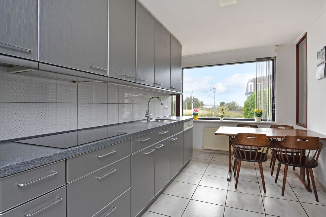 Aangrenzend vindt u de moderne keuken, voorzien van alle gewenste inbouwapparatuur: keramische kookplaat, vaatwasser, apothekerskast, combi-oven/magnetron, aparte oven en koelkast met vriesladen. De muur tussen de woonkamer en keuken kan eventueel worden verwijderd om één grote leefruimte te creëren.