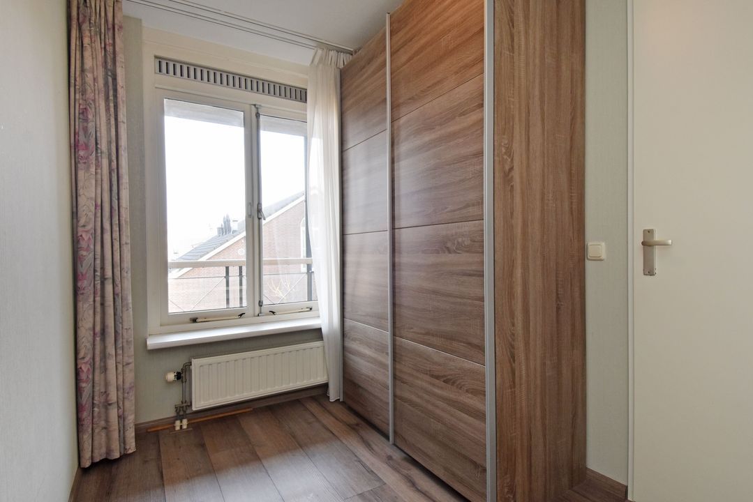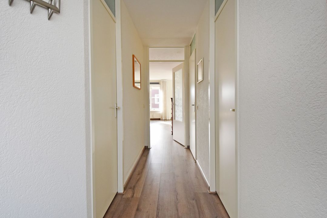 Via de openslaande deuren bereikt u het balkon aan de voorzijde, gelegen op het zonnige zuidwesten. Daarnaast beschikt het appartement over een tweede balkon aan de zijkant. De badkamer is voorzien van een wastafel, inloopdouche en toilet. Verder beschikt het appartement over twee slaapkamers.