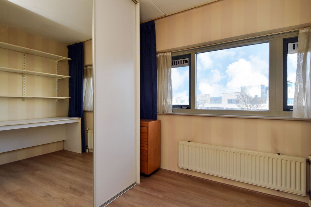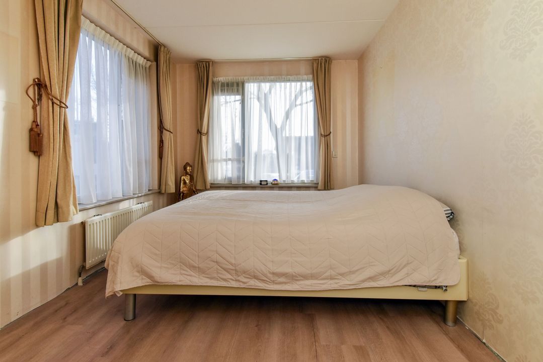 Het appartement beschikt over twee goed bemeten slaapkamers, beide voorzien van laminaatvloeren en grote ramen.