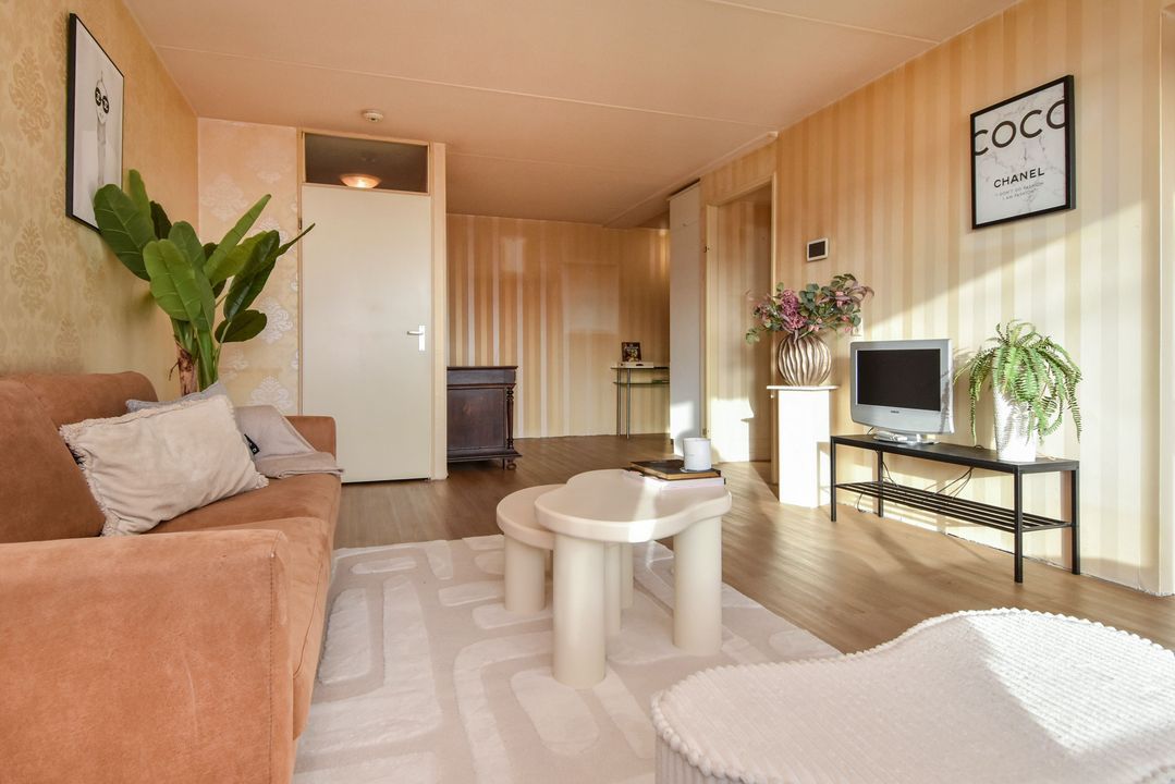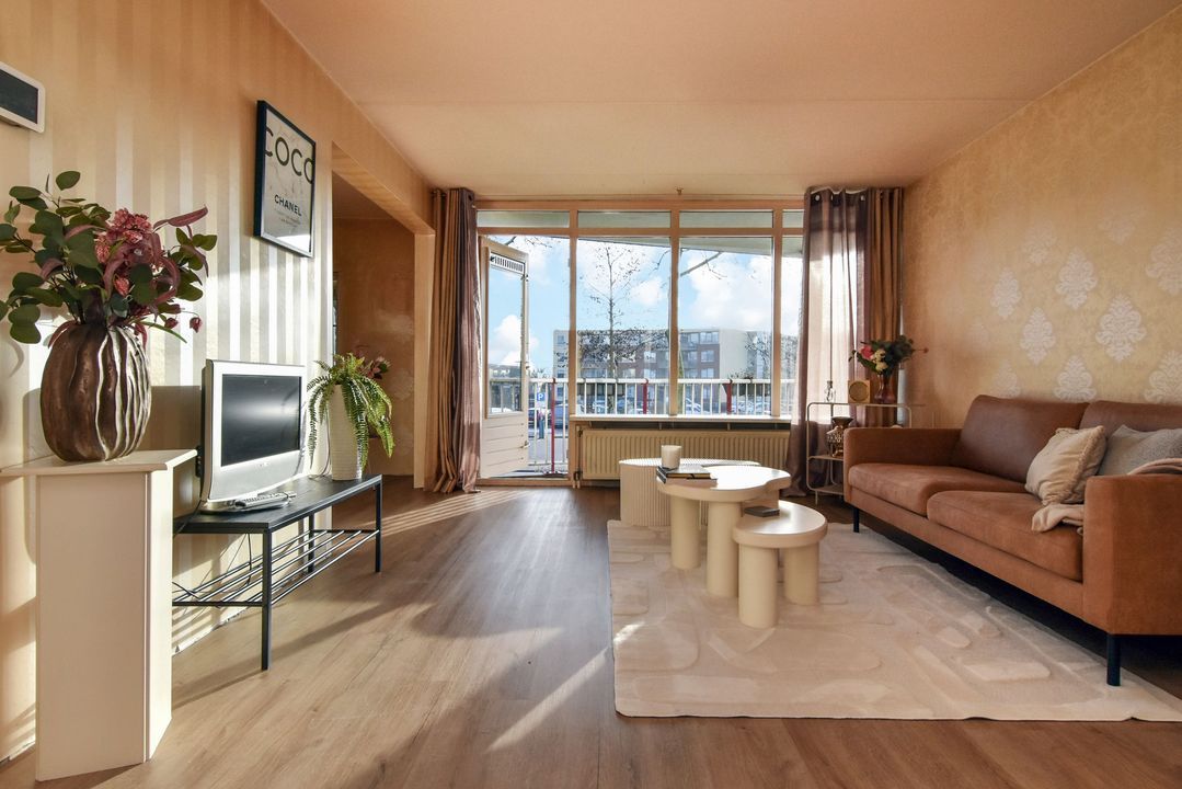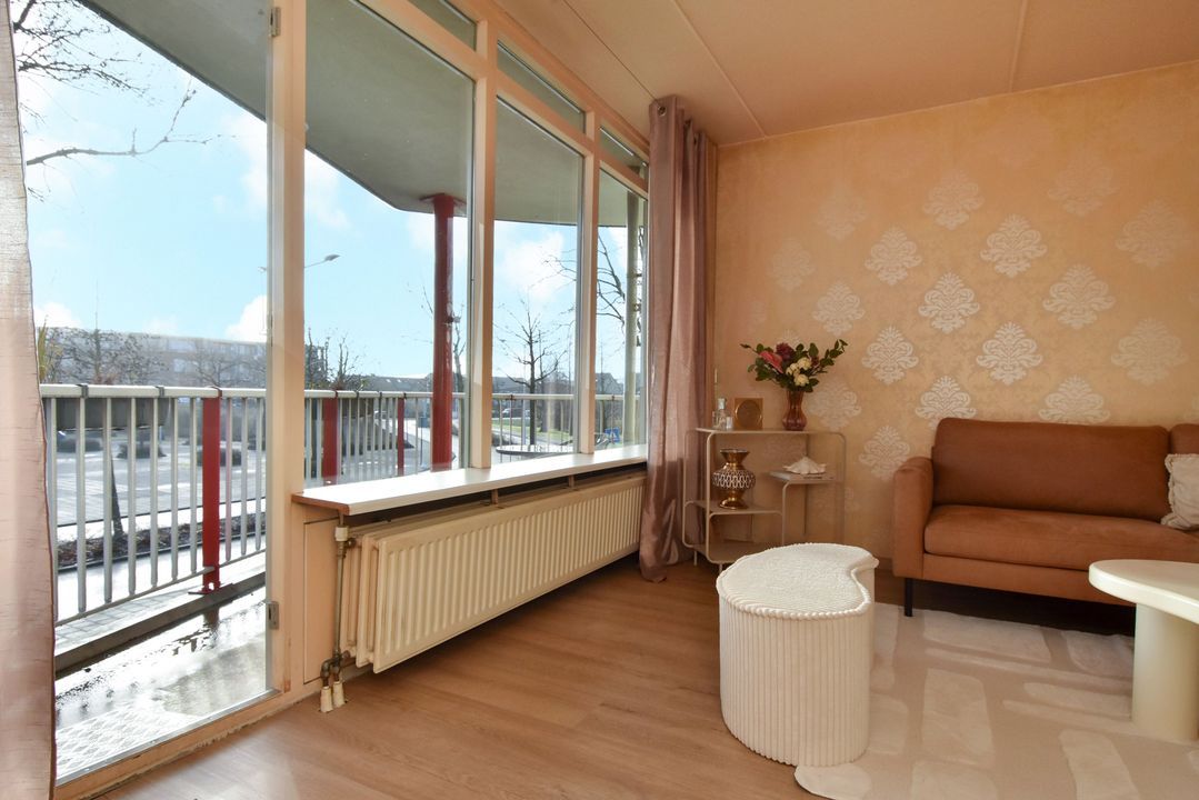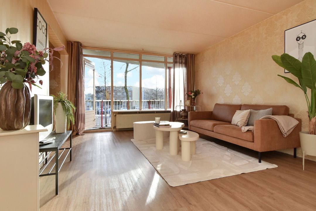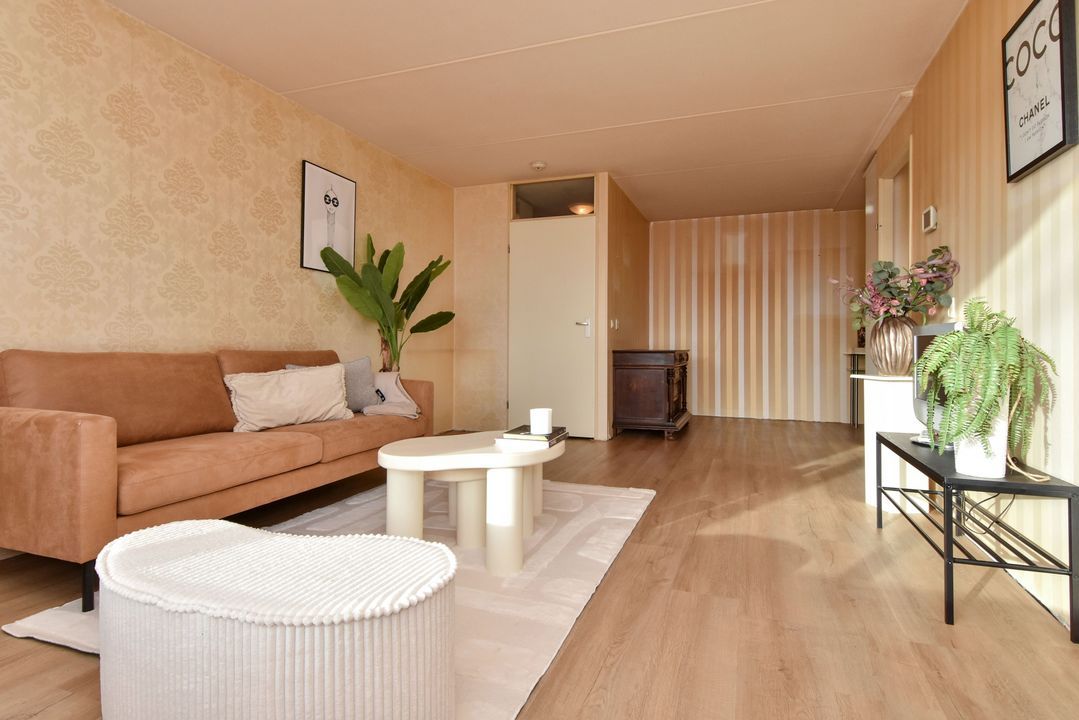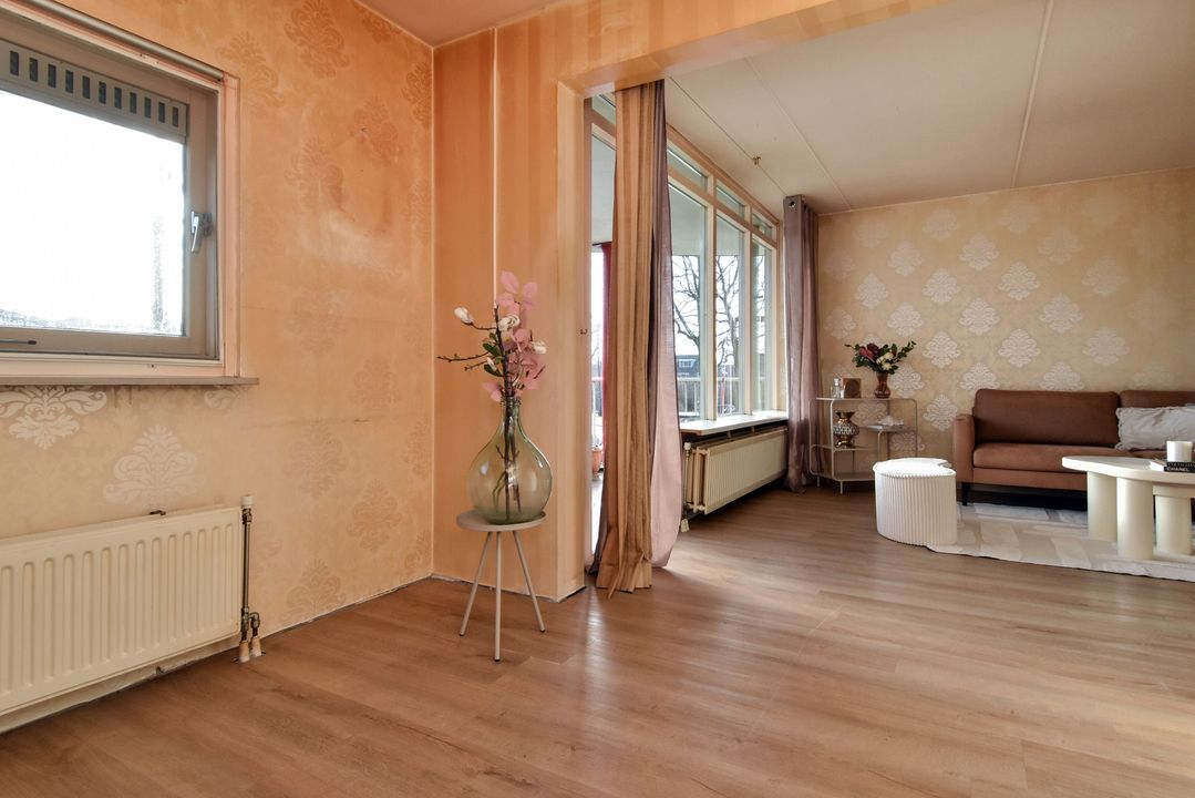 De ruime woonkamer van ca. 28 m² is heerlijk licht dankzij de royale raampartijen en is voorzien van een laminaatvloer (2021). Via een loopdeur heeft u direct toegang tot het balkon. Aansluitend bevindt zich een gezellige ruimte voor een eethoek.
