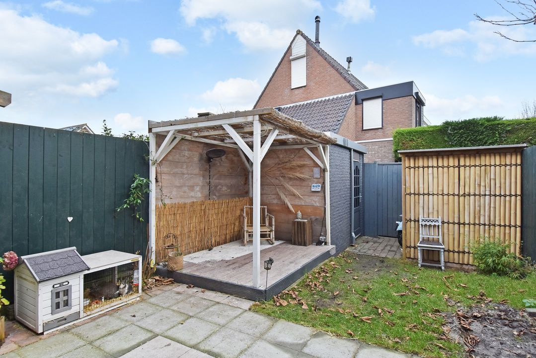 De zonnige achtertuin is gelegen op het zuidwesten, waardoor u hier vrijwel de hele dag van de zon kunt genieten. Achterin de tuin staat een stenen berging met elektra, met daaraan vast een gezellige veranda. De tuin beschikt verder over een achterom, buitenkraan en zonwering.