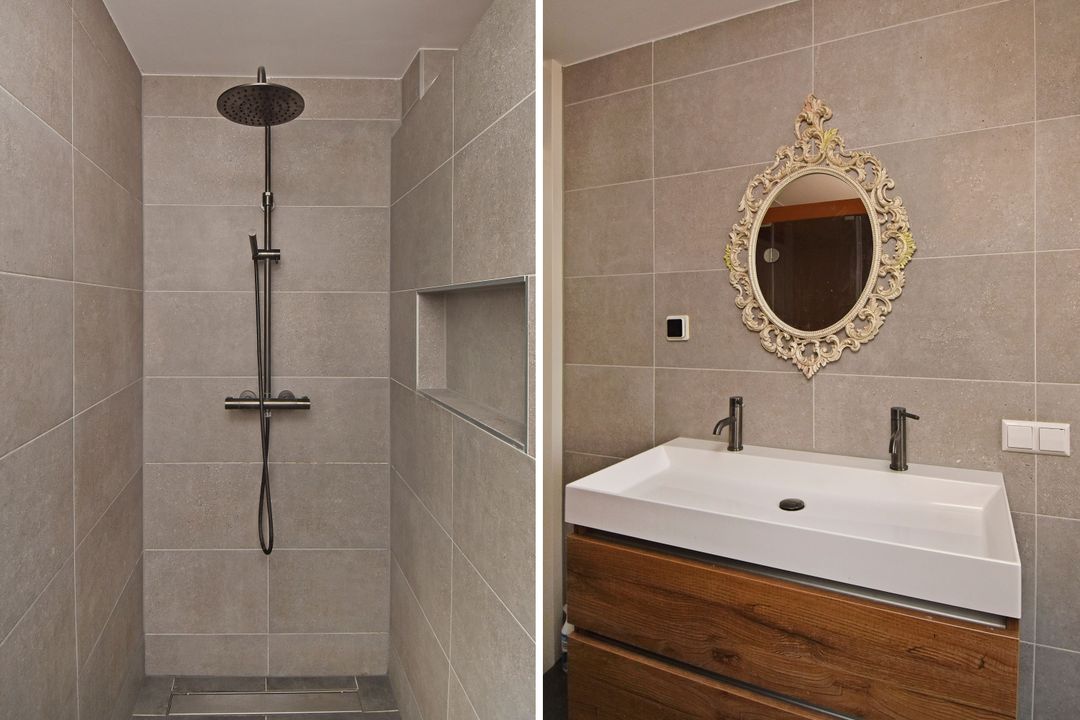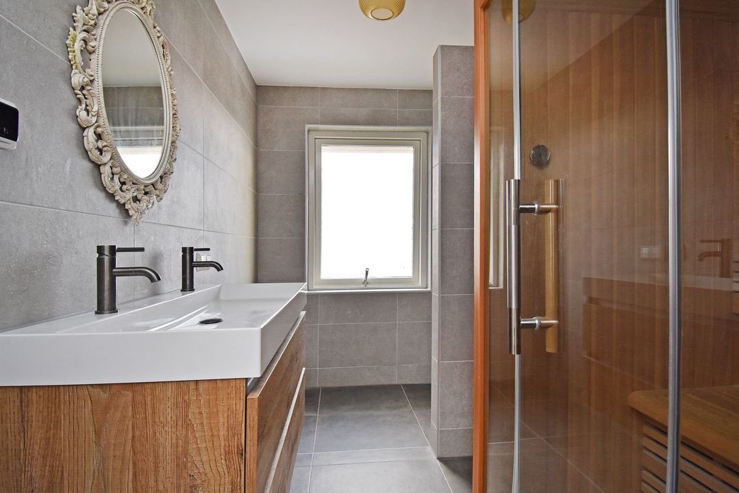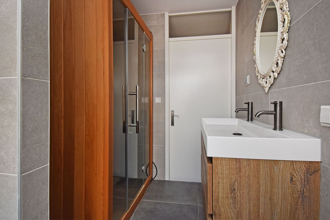 Op de eerste verdieping bevinden zich drie royaal bemeten slaapkamers, waarvan één kamer beschikt over openslaande ramen aan de tuinzijde. De luxe badkamer (2023) is werkelijk een parel: voorzien van een heerlijk infraroodsauna, een moderne douche met nisje, dubbele wastafel, vloerverwarming en stijlvolle wand- en vloertegels van hoogwaardige kwaliteit.