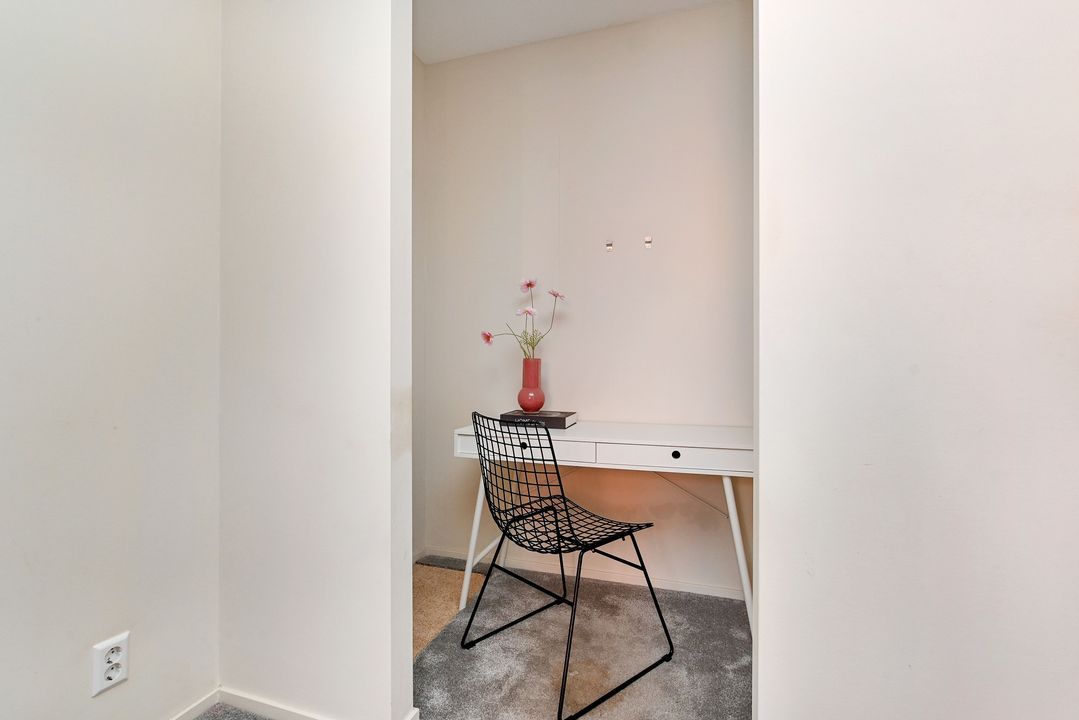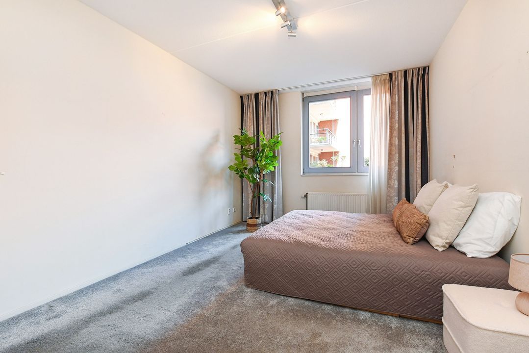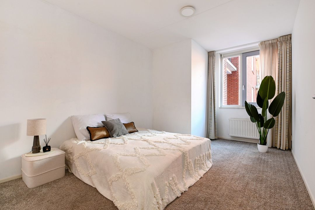 Het appartement beschikt over twee ruime slaapkamers, beide voorzien van vloerbedekking. Eén van de slaapkamers heeft een praktische walk-in closet.