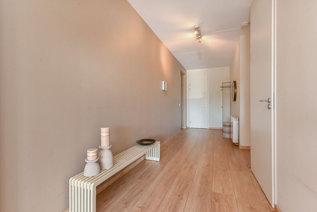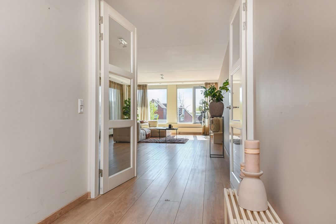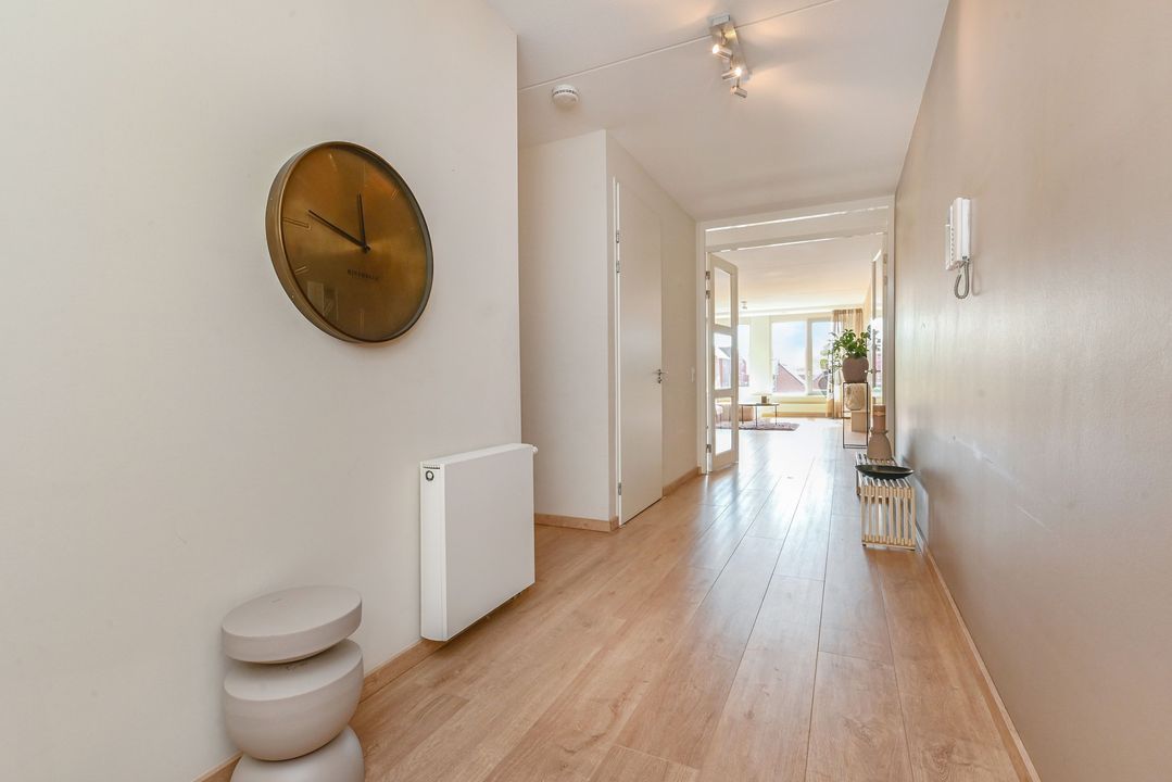 Via de ruime hal met videofoon, garderobe en meterkast betreed je de woning.