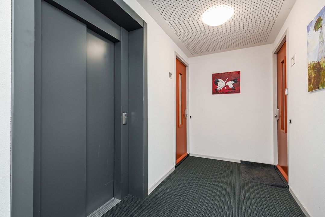 Verzorgde, afgesloten entree met brievenbussen, elektrische deuren en een liftinstallatie. De centrale hal is ruim en representatief.